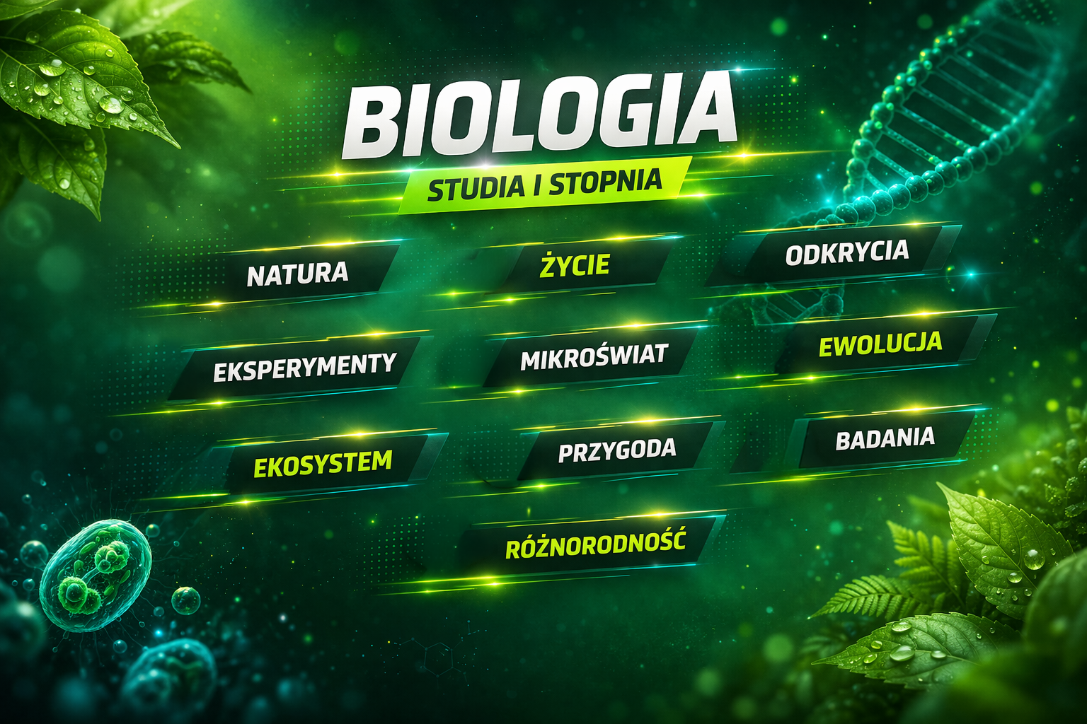 Studia na kierunku Biologia to świetna propozycja dla osób ciekawych świata przyrody i mechanizmów rządzących życiem. Podczas studiów poznasz funkcjonowanie organizmów – od poziomu komórki i DNA po całe ekosystemy. Nauczysz się prowadzić obserwacje i badania biologiczne, analizować wyniki oraz rozumieć zależności między organizmami a środowiskiem. W programie studiów dużo miejsca zajmują zajęcia laboratoryjne i terenowe, które pozwalają zdobyć praktyczne umiejętności i doświadczenie badawcze.