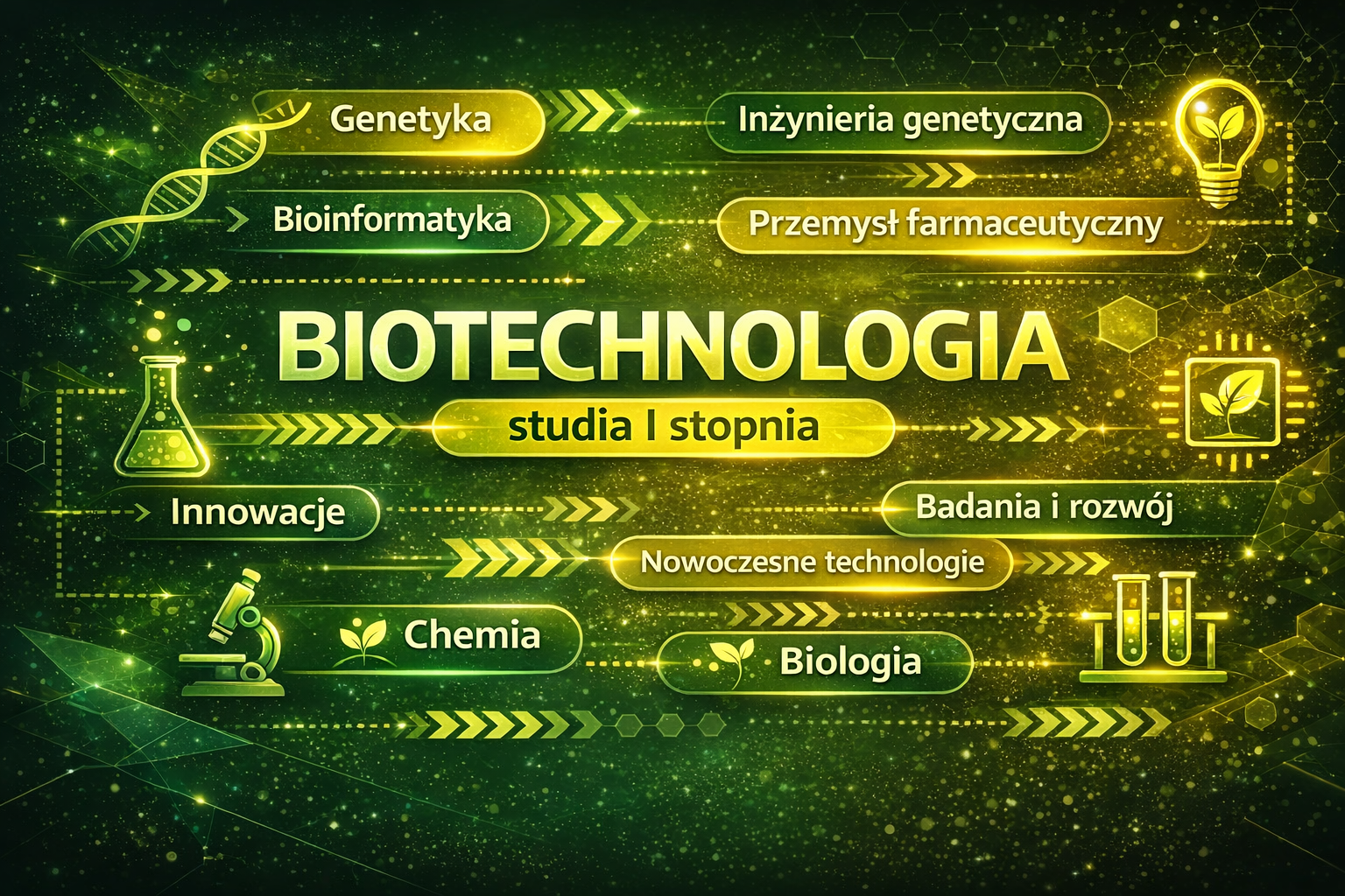 Studia na kierunku Biotechnologia to świetna propozycja dla osób, które chcą łączyć biologię, chemię, genetykę i nowoczesne technologie, żeby tworzyć rozwiązania, które naprawdę zmieniają świat. Na studiach dowiesz się, jak działają organizmy żywe na poziomie komórek i DNA oraz jak wykorzystać tę wiedzę w praktyce – np. w medycynie, produkcji żywności, przemyśle czy ochronie środowiska.