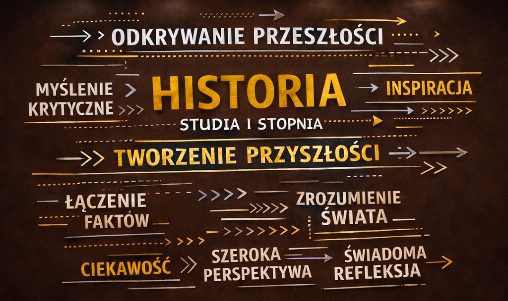 Studia na kierunku Historia to świetna propozycja dla tych osób, które chcą zrozumieć, skąd biorą się współczesne zjawiska społeczne, polityczne i kulturowe, by na tej bazie budować swoją karierę zawodową. Historia to kierunek rozwijający umiejętności analityczne, argumentacyjne i badawcze, cenione w wielu zawodach. Poza kursem historii studenci doskonalą umiejętności wykorzystywania technologii cyfrowych i AI w pracy historyka. Stawiamy na kształcenie, którego efektem jest otwartość, odpowiedzialność i kreatywność.