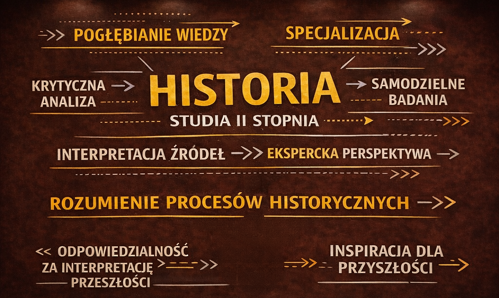 Studia na kierunku Historia to świetna propozycja dla osób, które chcą pogłębić wiedzę i rozwijać umiejętności badawcze, ucząc krytycznej analizy źródeł oraz samodzielnego formułowania wniosków. Dzięki nim zdobędziesz szeroką perspektywę, która pozwala lepiej rozumieć przeszłość i świadomie kształtować własną przyszłość. Poza kursem historii studenci doskonalą umiejętności wykorzystywania technologii cyfrowych i AI w pracy historyka.